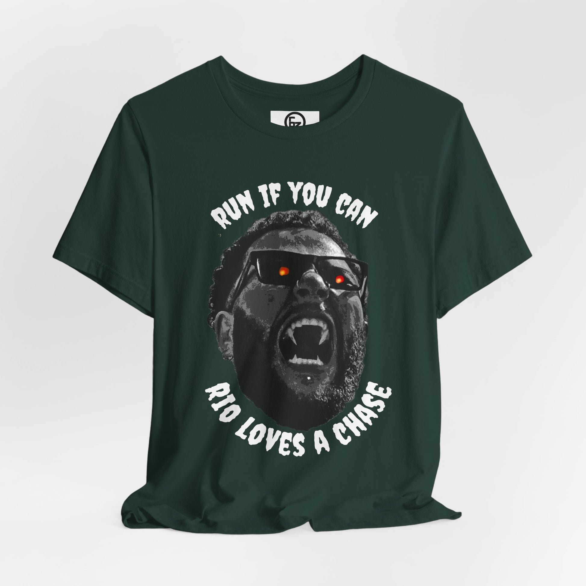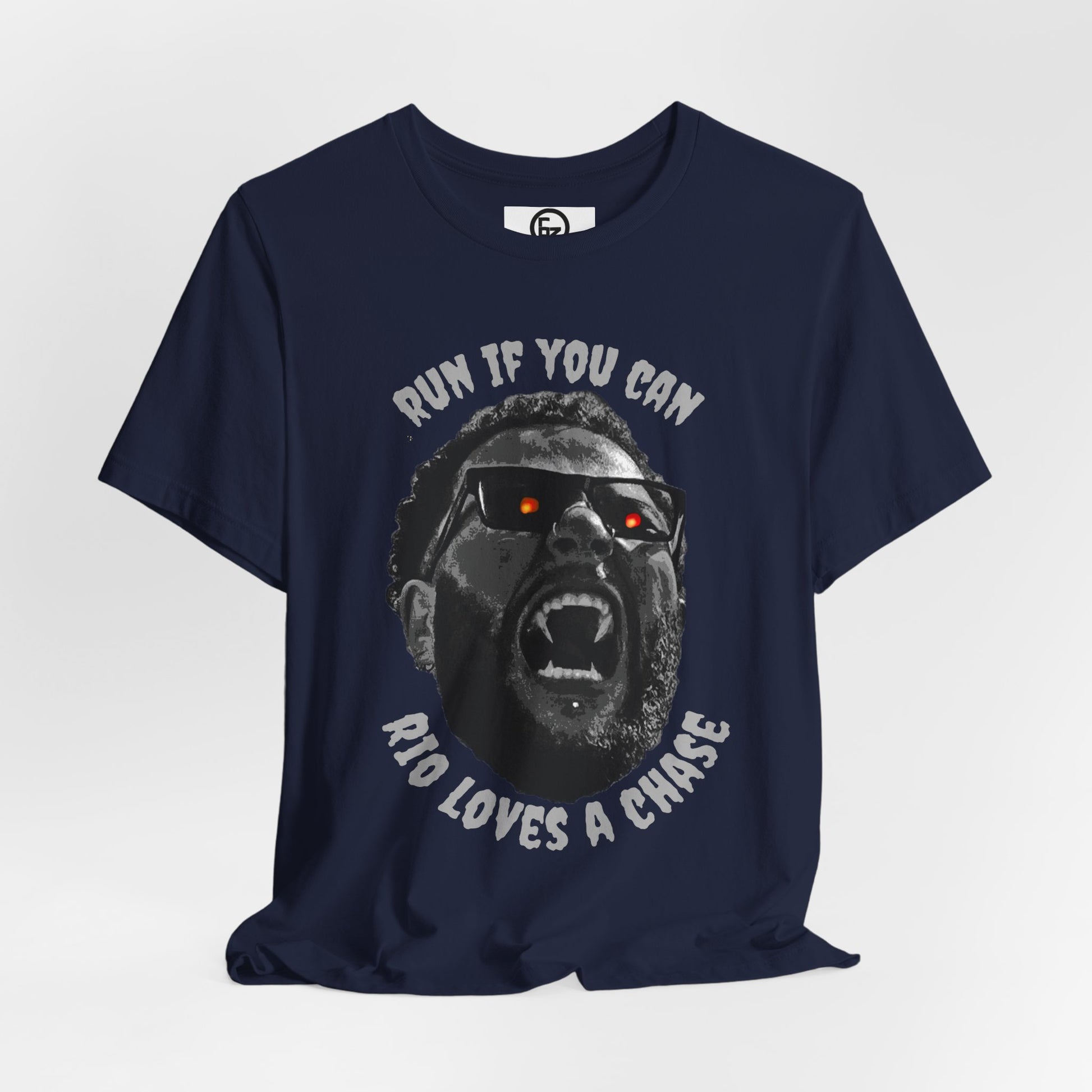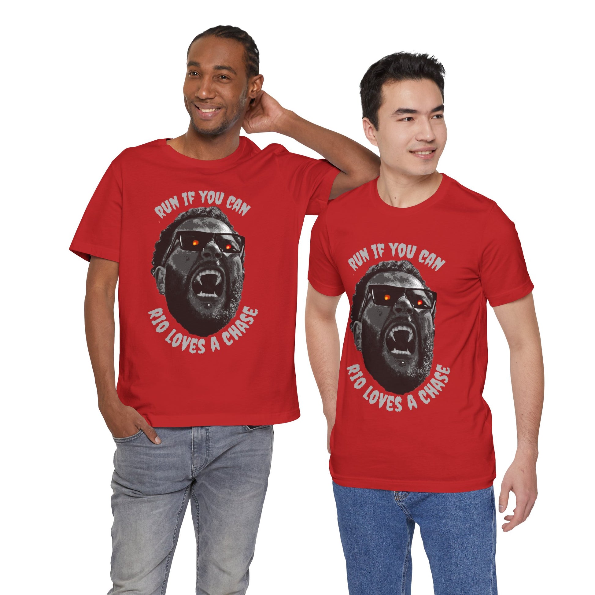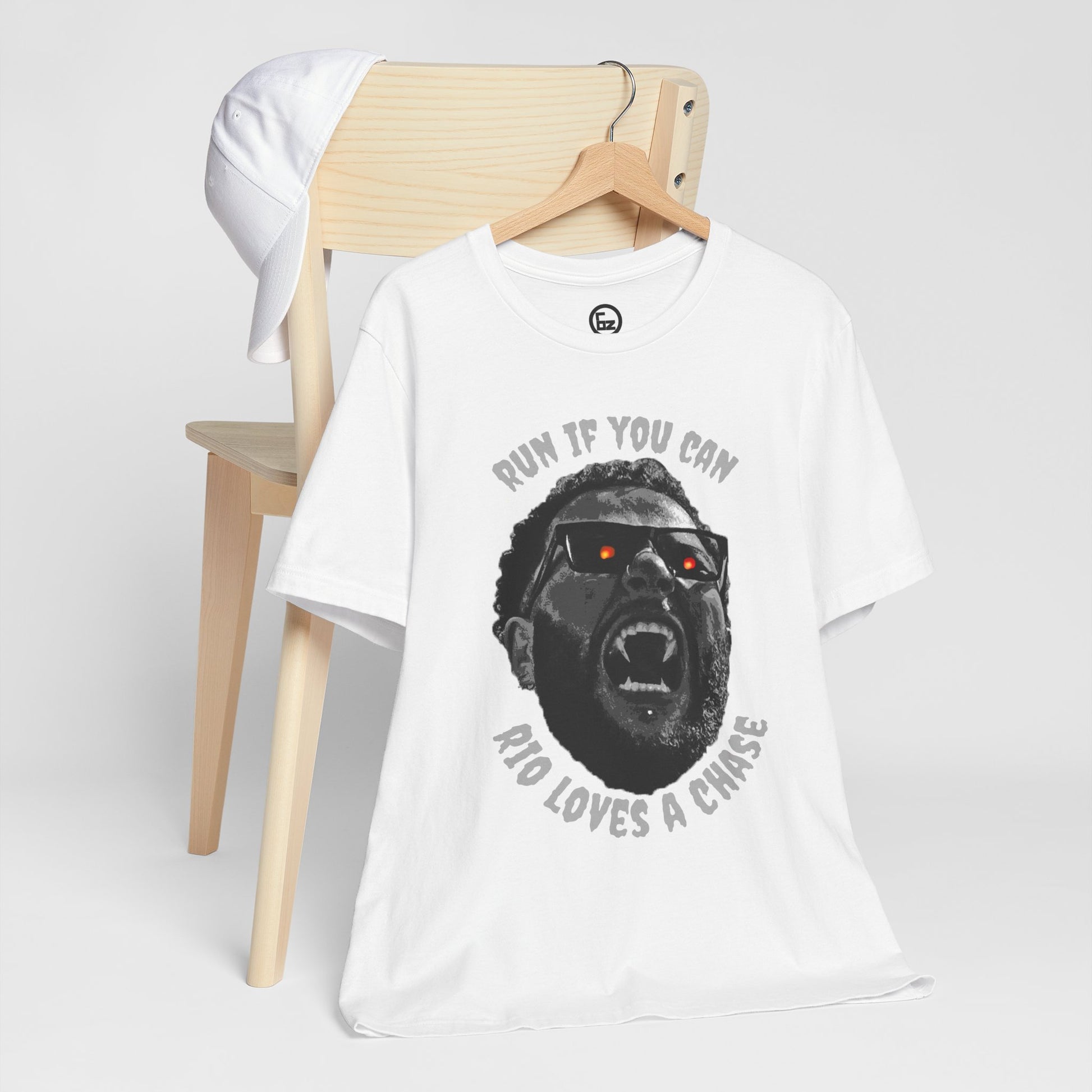 Funny Graphic Tee - 'Run If You Can, Rio Loves A Chase'