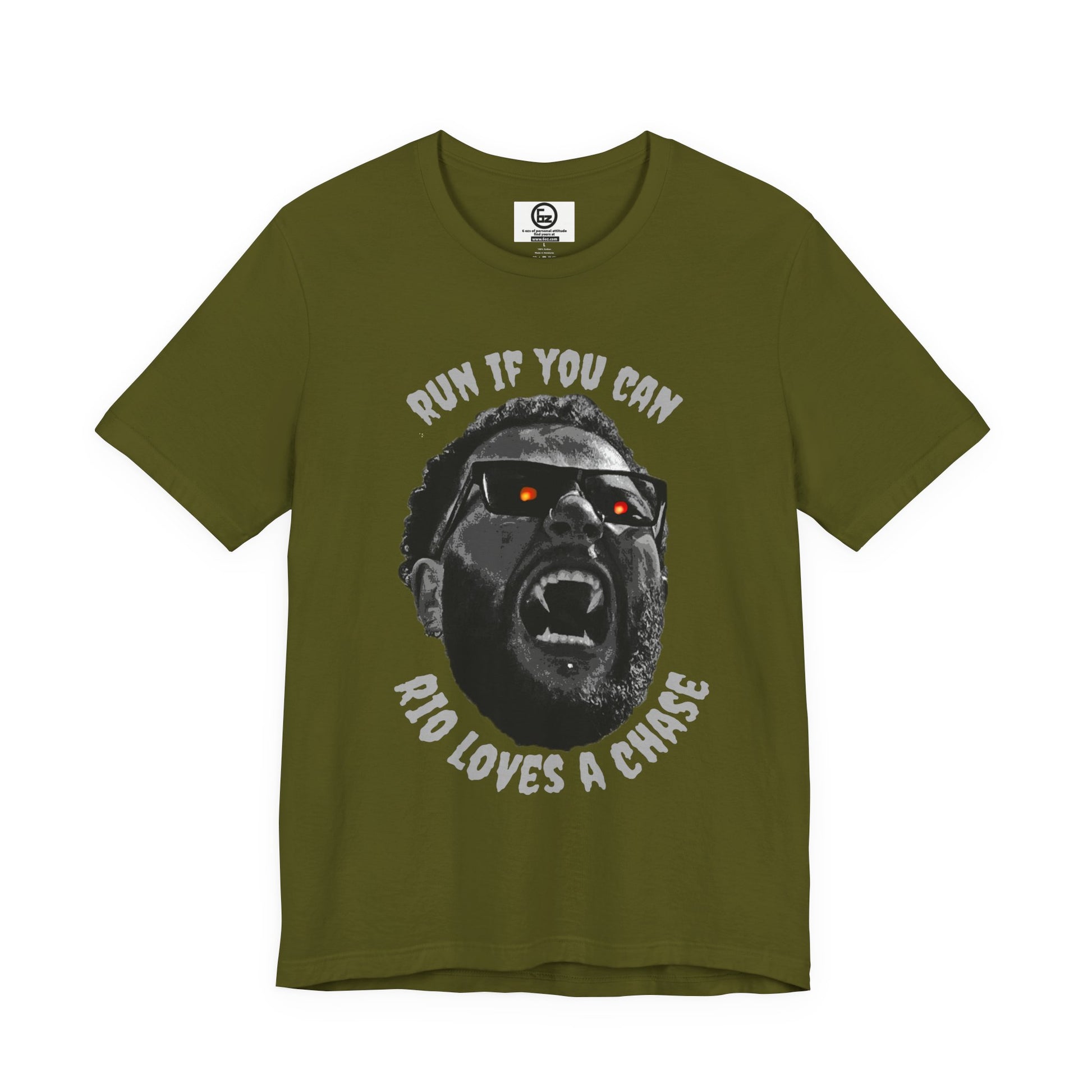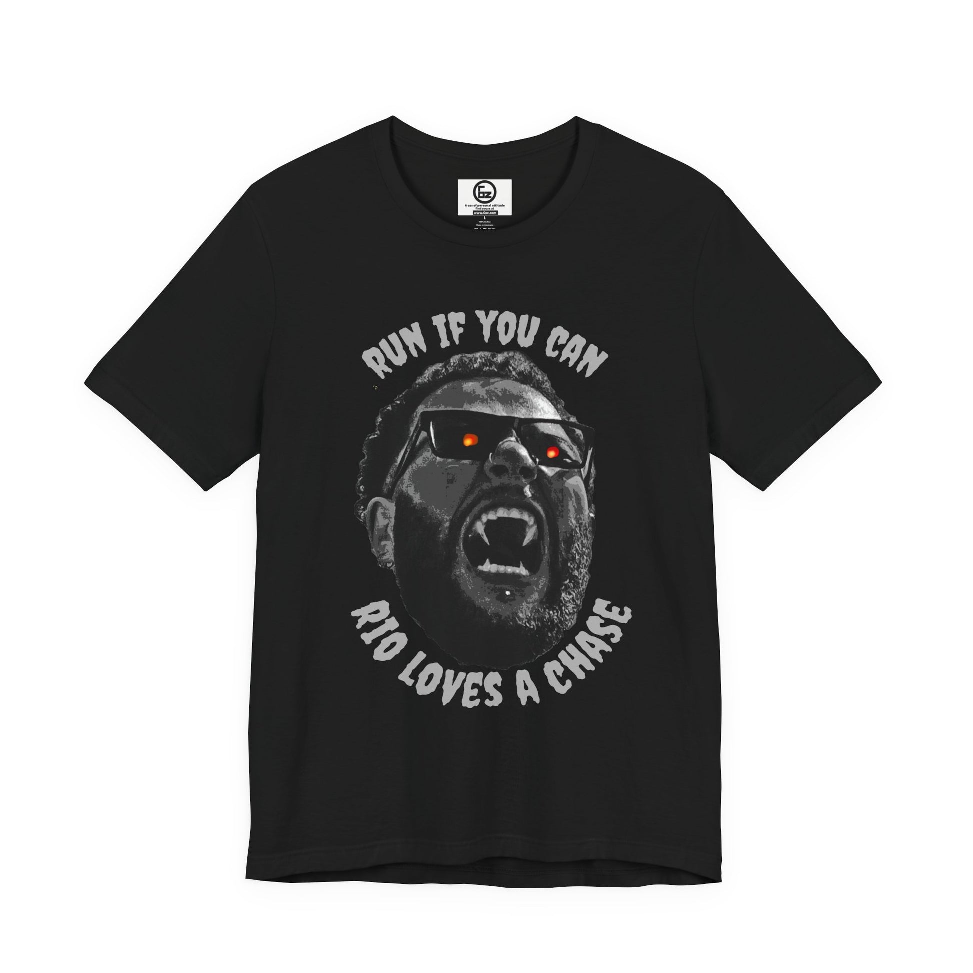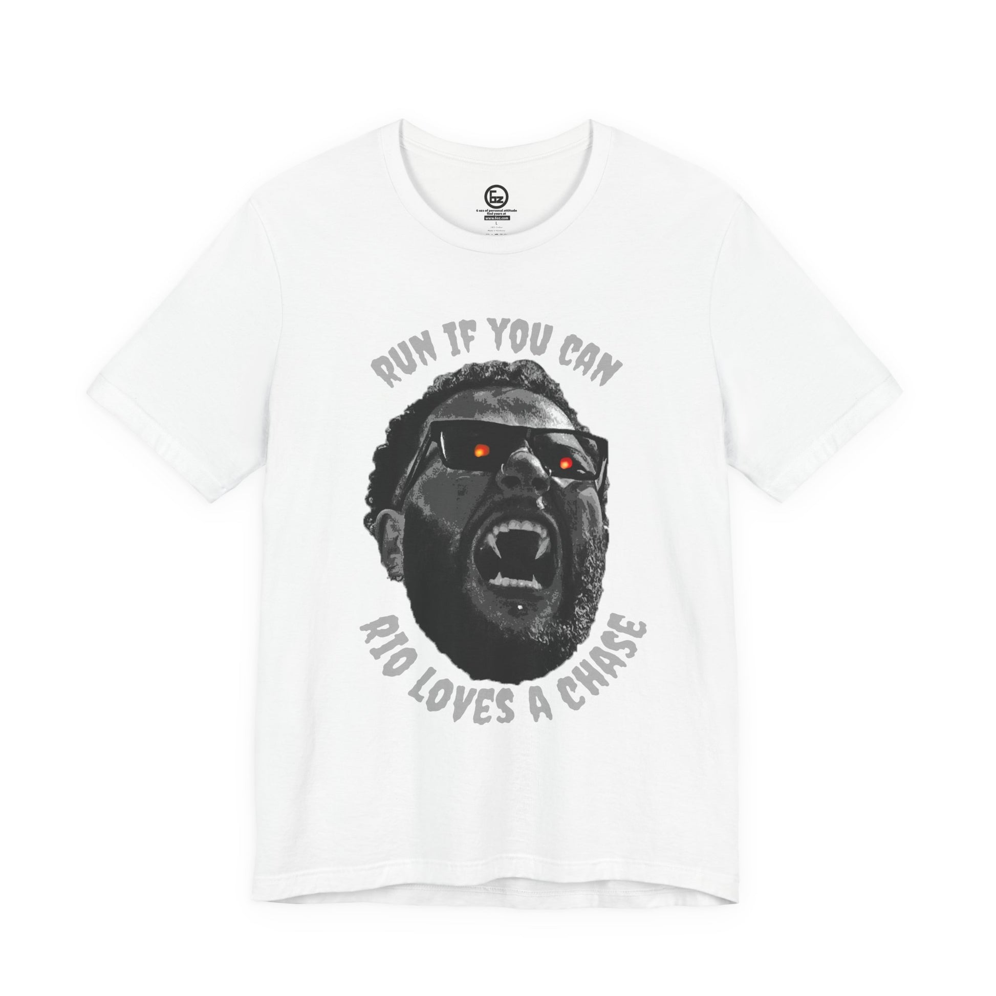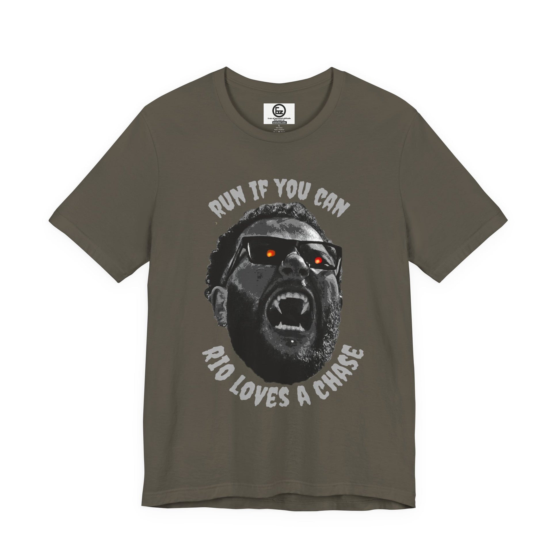 Funny Graphic Tee - 'Run If You Can, Rio Loves A Chase'
