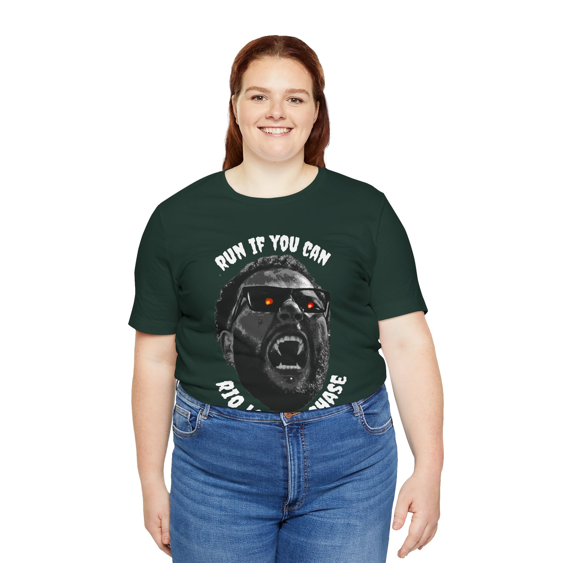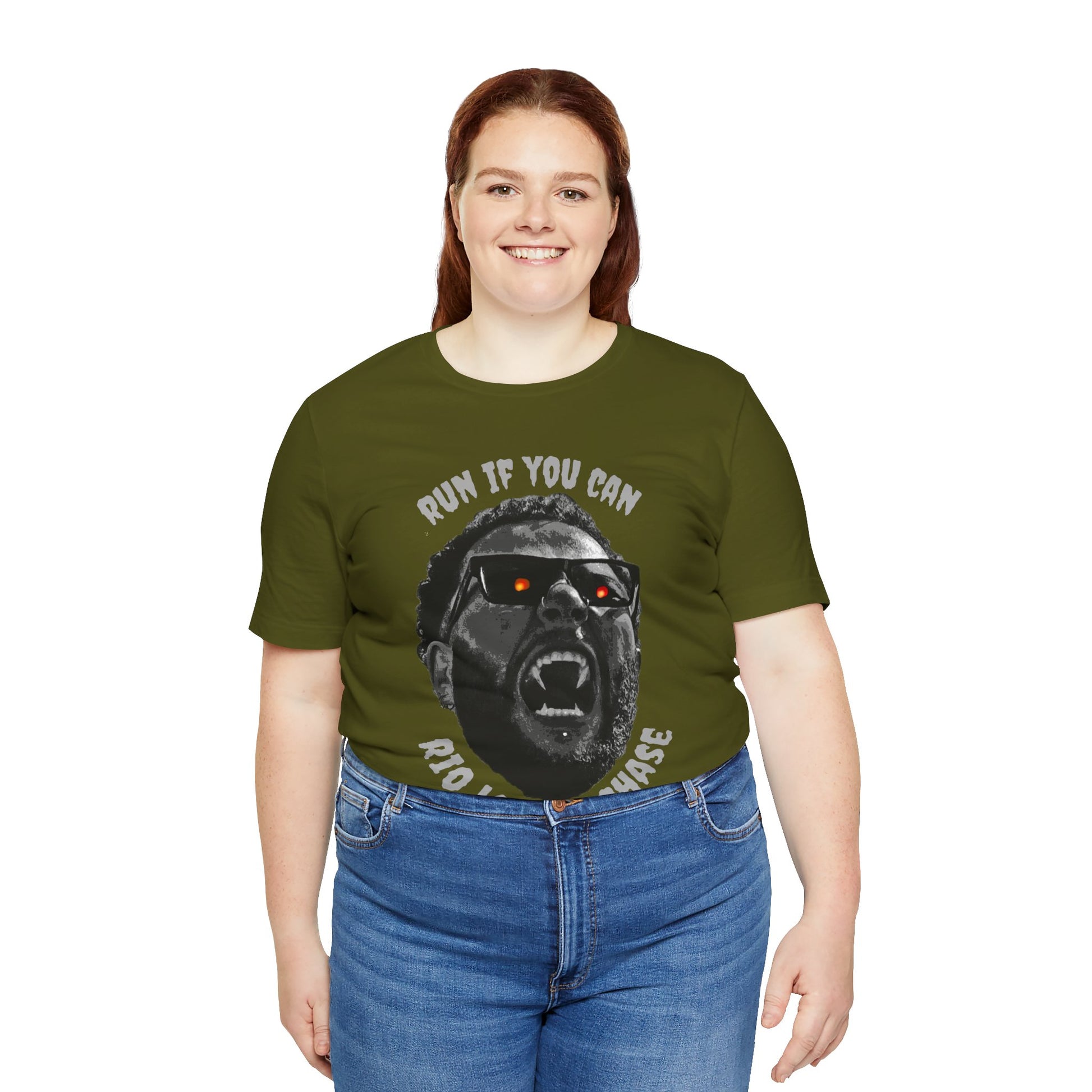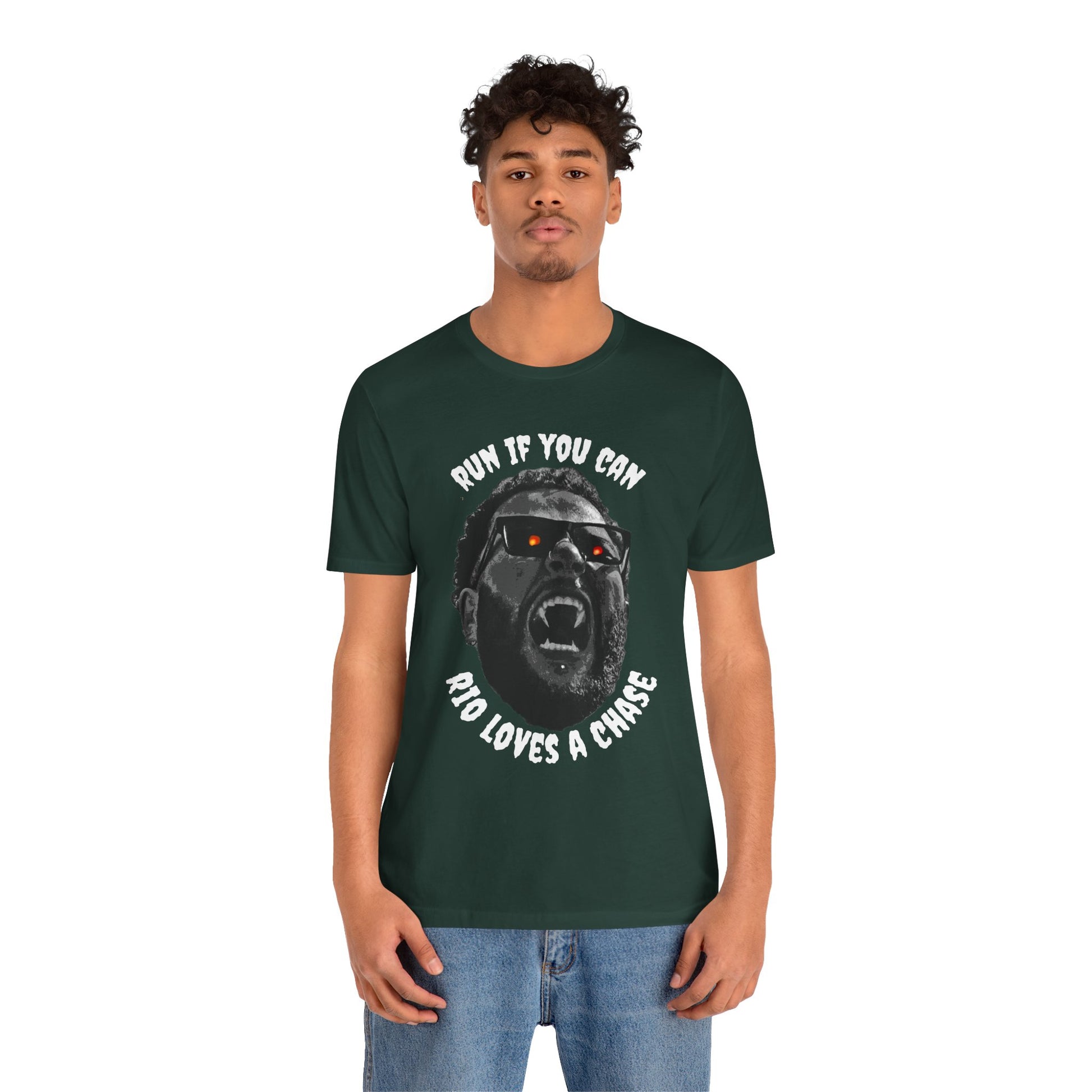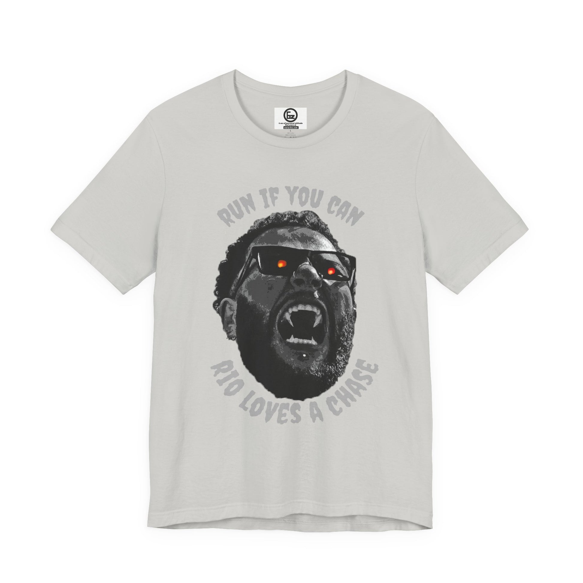 Funny Graphic Tee - 'Run If You Can, Rio Loves A Chase'